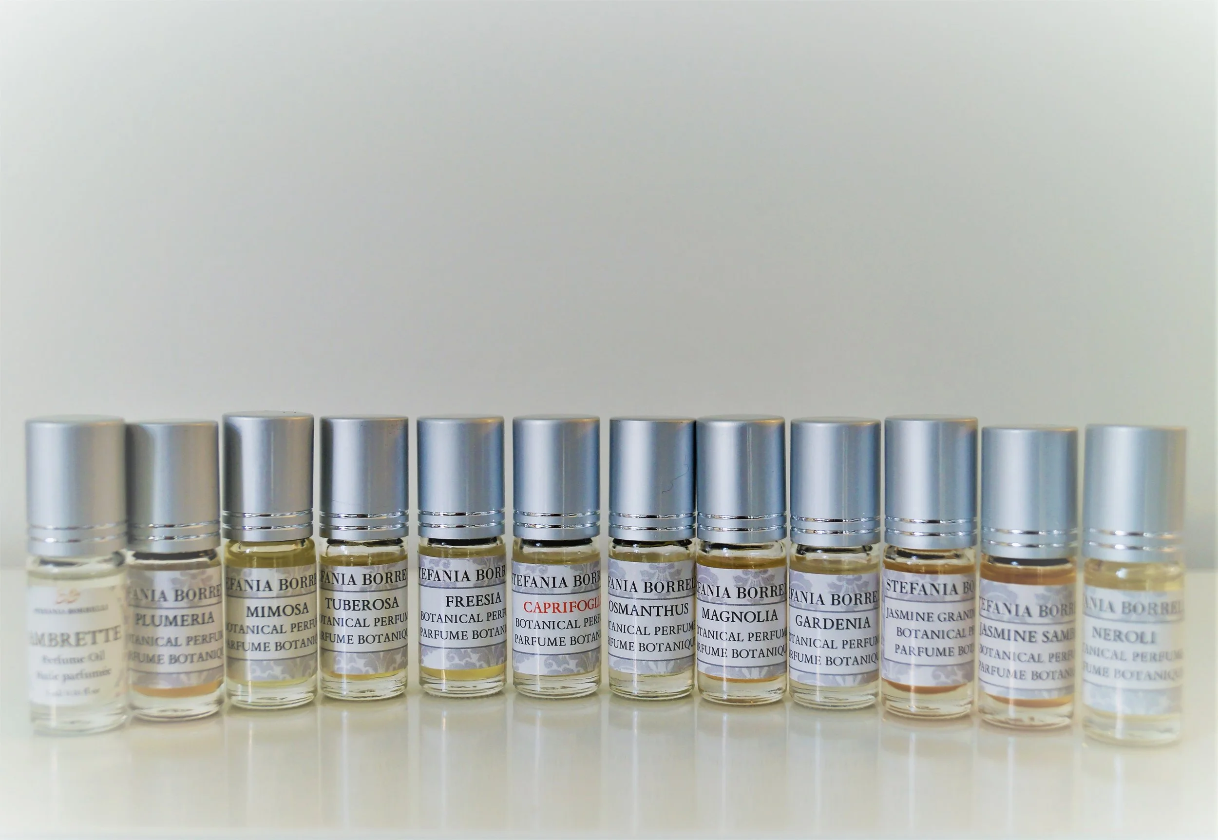 These precious oils come in sample vials, sample mini roll-on and regular 5ml perfume roll-on bottles. Pure essential oils and absolutes infused in a base of Jojoba, & light Coconut Oil.